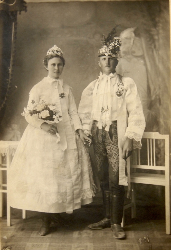 Svatební pár z Hlohovce, kolem roku 1920. Fota: archiv autorky