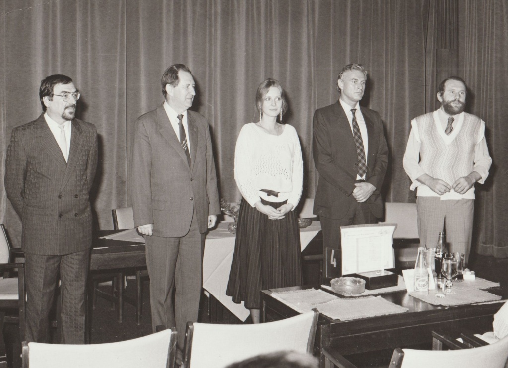 Předpremiéra filmu Poutníci. Druhý zleva je Vojtěch Kunčík (1988)